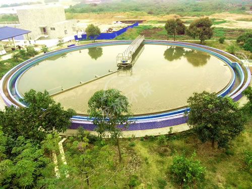待处理的水从中心筒进水管进入,通过稳流筒稳流进入沉淀池然后向四周扩散沉淀,清水由池边溢流堰流出,其中沉淀物由刮泥版刮集到吸泥口,根据连通管原理,利用水位差将池底污泥吸入排泥槽;通过虹吸管进入中心筒排泥管排出。同时池中浮渣由浮渣刮板收集经排渣斗排出池外。